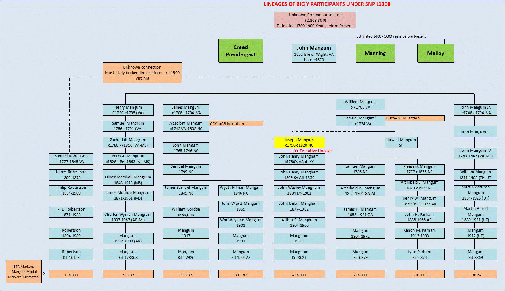 of which was the L1308 SNP that defines the Mangum, Creed, Prendergas,